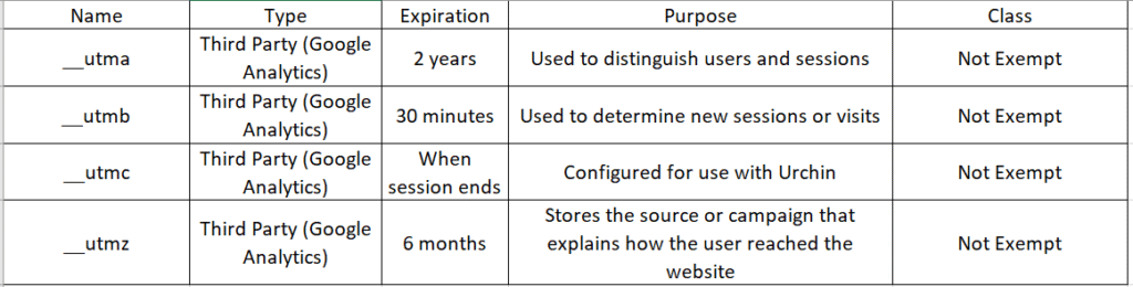 How Google Analytics uses cookies: https://developers.google.com/analytics/devguides/collection/analyticsjs/cookie-usage?hl=en#analyticsjs